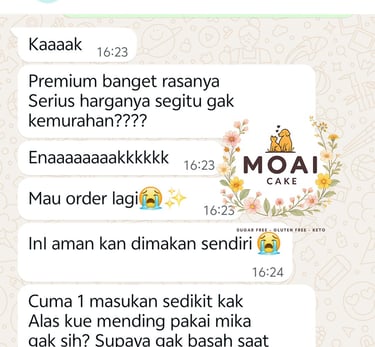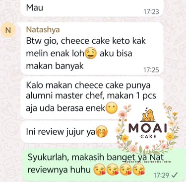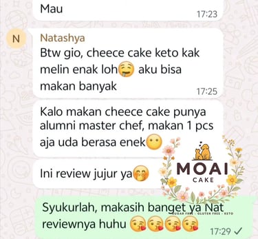 βAku memulai MOAI Cake karena tubuhku sering bereaksi buruk setiap kali makan manisβjerawat, maag, sakit gigi, benjolan leher, hingga sulit fokus. Dari dapur rumah, aku bereksperimen membuat cheesecake sehat tanpa gula & tepung. Ternyata enak, teman-temanku suka, dan sejak itu aku sadar: hidup sehat bisa tetap manis tanpa rasa bersalah.β